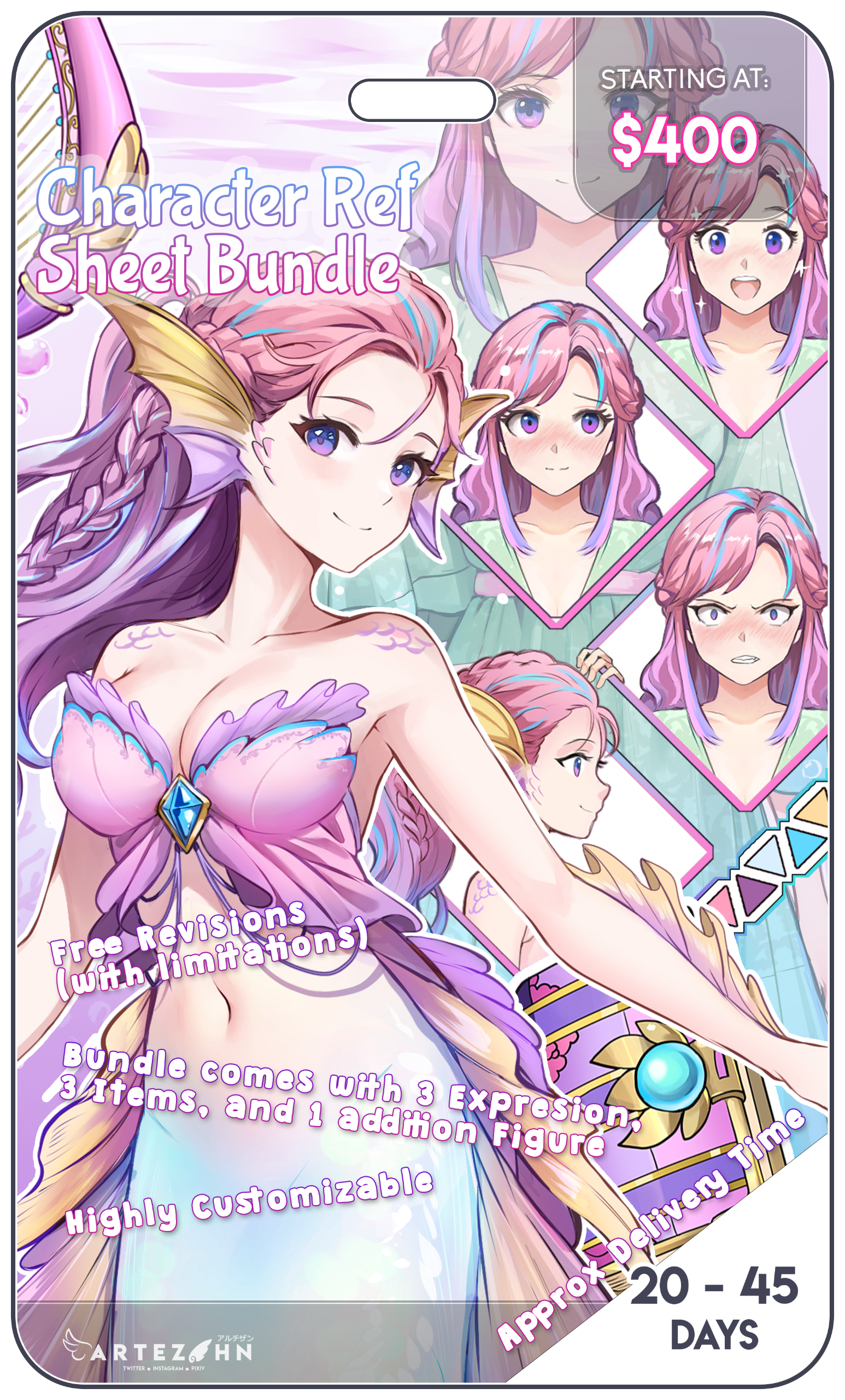 Here are my current available services. Visit Lan'Yue Studio to place an order.